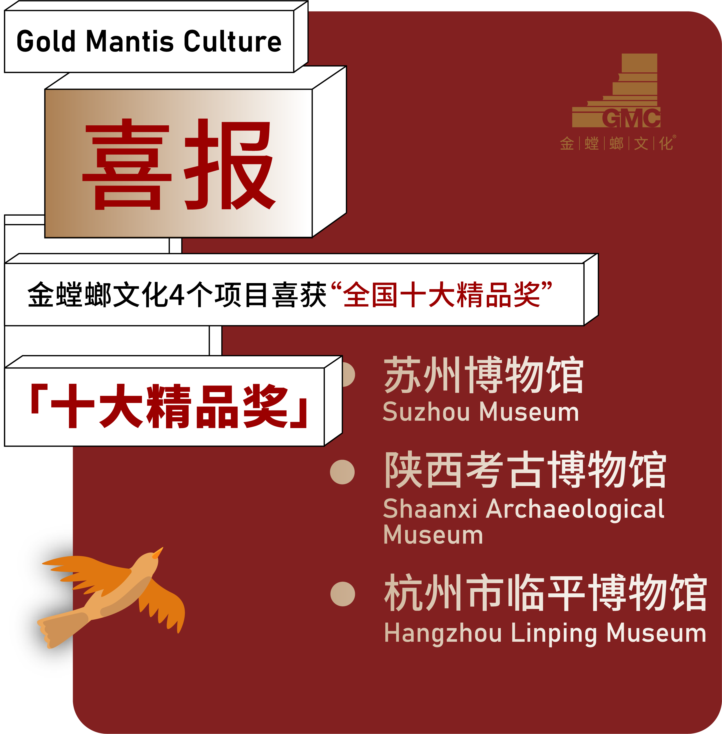 今天上午,由國家文物局指導,中國博物館協會、中國文物報社主辦的第二十屆(2022年度)全國博物館十大精品陳列展覽精品推介活動,在“5·18國際博物館日”中國主會場福建揭曉結果。 金螳螂文化三大項目喜獲第二十屆(2022年度)全國博物館十大陳列展覽「精品獎」! ① 純粹江南 技憶蘇州——蘇州博物館西館基本陳列:蘇州博物館 ② 考古圣地·華章陜西——陜西考古博物館基本陳列:陜西考古博物館 ③ 春風又綠——江南水鄉(xiāng)文化展: 杭州市臨平博物館 “西藏博物館基本陳列——西藏歷史與文化、民俗展”喜獲全國博物館十大陳列展覽推介項目「特別獎」! 活動同時公布了“2023年度全國最具創(chuàng)新力博物館名單”,金螳螂文化項目“揚州中國大運河博物館”榮登榜單。 蘇州博物館西館位于江蘇省蘇州市高新區(qū)獅子山下,展陳面積13391平方米。“純粹江南 技憶蘇州——蘇州博物館西館基本陳列”展覽包括“純粹江南”與“技憶蘇州”兩個部分,圍繞如何解讀作為江南核心的蘇州,以一萬年蘇州歷史和一千年蘇作工藝為主題,講述蘇州故事,展示蘇作匠心。 由金螳螂文化設計打造的“純粹江南 · 蘇州歷史陳列”是蘇州地區(qū)首個通史陳列,用1200余件/套文物,講述蘇州萬年文明史、兩千五百年城市史,溯源蘇州文脈傳承和地域文化發(fā)展。 《考古圣地·華章陜西——陜西考古博物館基本陳列》展覽聚焦考古學科發(fā)展史和考古學理論、成果解讀、文保理念和技術三大主題,分為“考古歷程”“文化譜系”“考古發(fā)現”“文??萍肌彼膫€篇章。 展覽面積5800平方米,展線長度905米,展出文物4891件(套)。 杭州市臨平博物館,又名中國江南水鄉(xiāng)文化博物館,展覽面積2600平方米,展線370米,共展出文物929件(套)。 在國家“長江三角洲區(qū)域一體化發(fā)展”戰(zhàn)略時代背景下,為激發(fā)長三角地區(qū)文化自信,塑造文化認同,“春風又綠——江南水鄉(xiāng)文化展”從文化地理學的視野切入,通過五個單元,從地域、經濟、生活、人文、轉型五個維度全面解讀江南水鄉(xiāng)文化。 “西藏博物館基本陳列——西藏歷史與文化、民俗展”榮獲第二十屆(2022年度)全國博物館十大陳列展覽推介項目特別獎。 展覽由“雪域長歌——西藏歷史文化”和“離太陽最近的人——西藏民俗文化”組成,旨在通過西藏地區(qū)的悠久歷史和璀璨文明,闡釋歷代中央政府對西藏地方的主權行使及其各民族與其他兄弟民族之間的交往交流與文化互鑒。 展覽分為史前、唐宋、元明、清代民國、新西藏五個部分,展覽面積8705平方米,展線長度1900米、展品共2000件(套)。 揚州中國大運河博物館榮獲“2023年度全國最具創(chuàng)新力博物館”。 揚州中國大運河博物館坐落于江蘇省揚州市三灣古運河畔,總面積約8萬平方米。河坊街市,張燈結彩;坐聽雨聲,行觀四季;多樣體驗,皆聚于此。 金螳螂文化出品“因運而生——大運河街肆印象”、“大運河非物質文化遺產”、“運河濕地尋趣”3個展覽,助力傳承運河文化、講好運河故事、傳播運河聲音。 二十年展覽展示行業(yè)深度探索 從江南水鄉(xiāng)到神州大地 金螳螂文化結緣各地博物館 打造了眾多精品項目 愿以專業(yè)與敬業(yè) 共創(chuàng)博物館的可持續(xù)發(fā)展 與美好生活